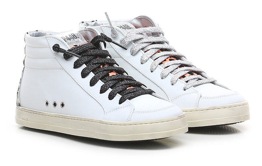 Sneaker in pelle con talloncino in cavallino e zip laterale. Suola in gomma. Altezza tacco 30mm, platform 25mm con battuta 5mm.