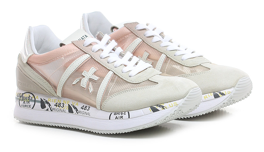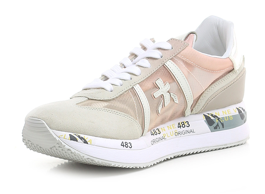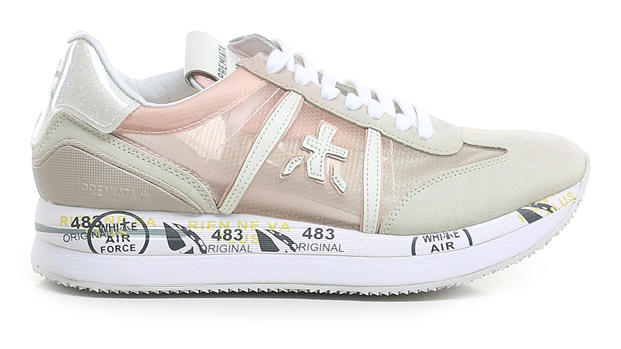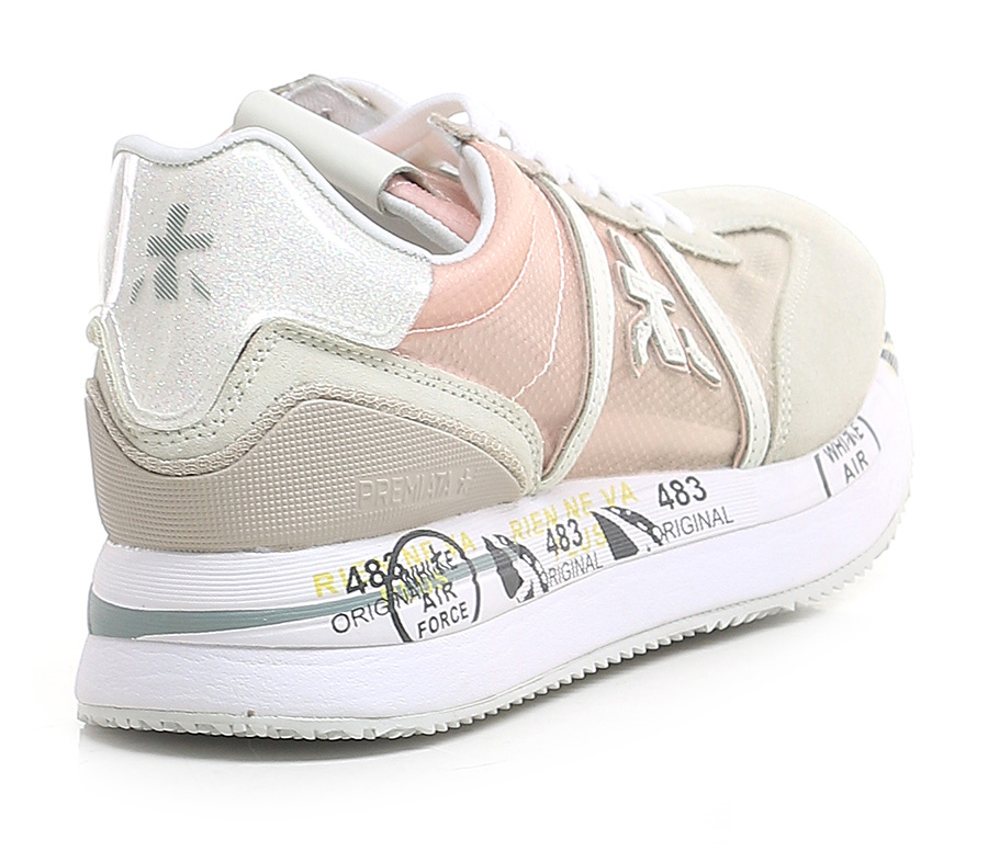 Premiata, die Marke ist Synonym für Avantgarde und Ausdruck, hat ein einziges Ziel: der ideale Reisebegleiter für alle zu sein, die Klischees hassen und an Freiheit glauben. Die Schuhe von Premiata stehen für extreme Kreativität, sie werden von Hand gefertigt, das Material wird ausgehend vom Weißen modelliert, das große Freiheit für die Entwicklung der Formensprache lässt. Der Schuh von Premiata, mit großer Geschicklichkeit und viel Liebe zum Detail gefertigt, besticht durch Eleganz, Komfort und ein unverwechselbares Design.