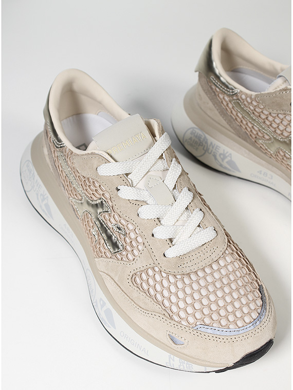 Premiata, die Marke ist Synonym für Avantgarde und Ausdruck, hat ein einziges Ziel: der ideale Reisebegleiter für alle zu sein, die Klischees hassen und an Freiheit glauben. Die Schuhe von Premiata stehen für extreme Kreativität, sie werden von Hand gefertigt, das Material wird ausgehend vom Weißen modelliert, das große Freiheit für die Entwicklung der Formensprache lässt. Der Schuh von Premiata, mit großer Geschicklichkeit und viel Liebe zum Detail gefertigt, besticht durch Eleganz, Komfort und ein unverwechselbares Design.