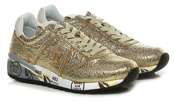 Sneaker in pelle martellata laminata con suola in gomma, tacco 45, platform 20 con battuta 25.
