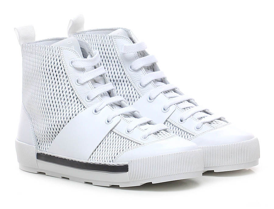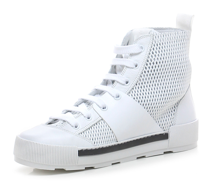 Sneaker aus perforiertem Leder mit Mesh-Effekt, Seitenband, Zehen- und Fersenbereich aus Leder, Gummisohle. Logo-Schriftzug auf der Zunge. Sohlenhöhe: 35, Plattform 25 mit Absatz 10. Ungefüttert, runde Spitze.