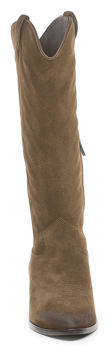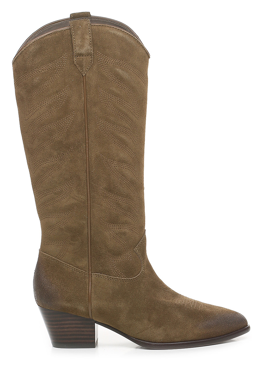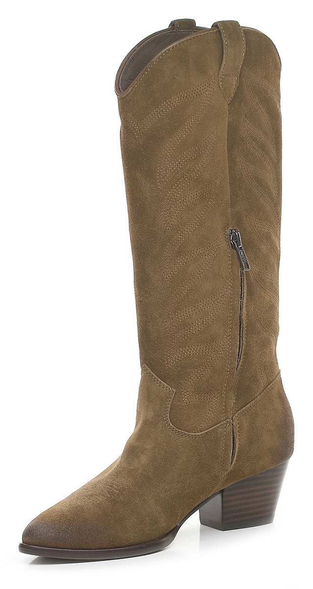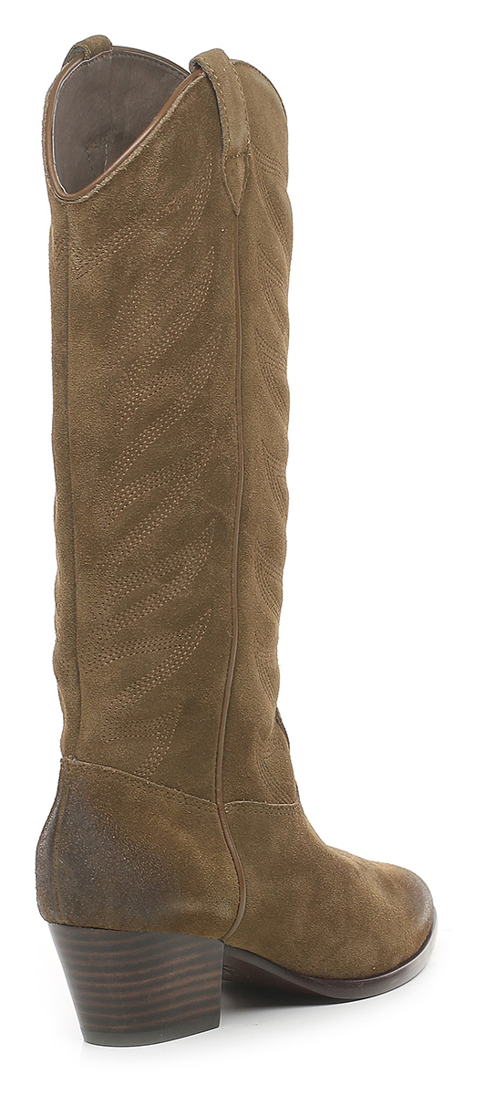 Wildlederstiefel mit Vintage-Effekt, seitlichem Reißverschluss und Leder- und Gummisohle. Absatzhöhe 50mm. Absatz in Holzoptik. Beinhöhe 35cm.