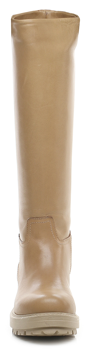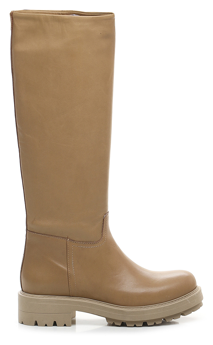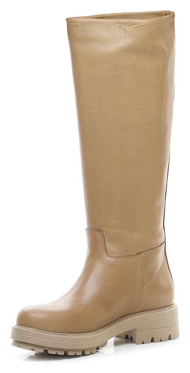 Lederstiefel. Stollensohle aus Gummi. 40 mm Absatzhöhe, 25 mm Plateau mit 15 mm Absatz. Beinhöhe 39cm.