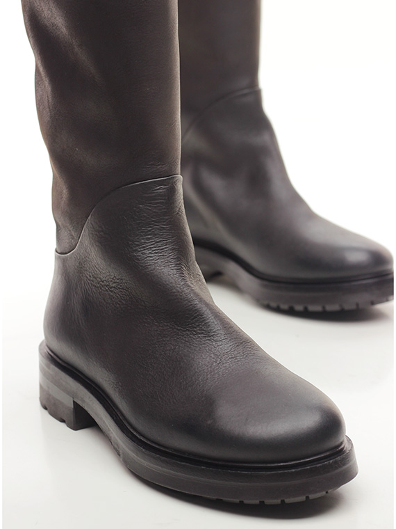 Stiefel aus geöltem Leder mit Gummisohle. 40 mm Absatzhöhe, 20 mm Plateau mit 20 mm Absatz. Beinhöhe 41cm.