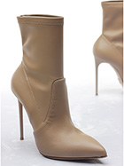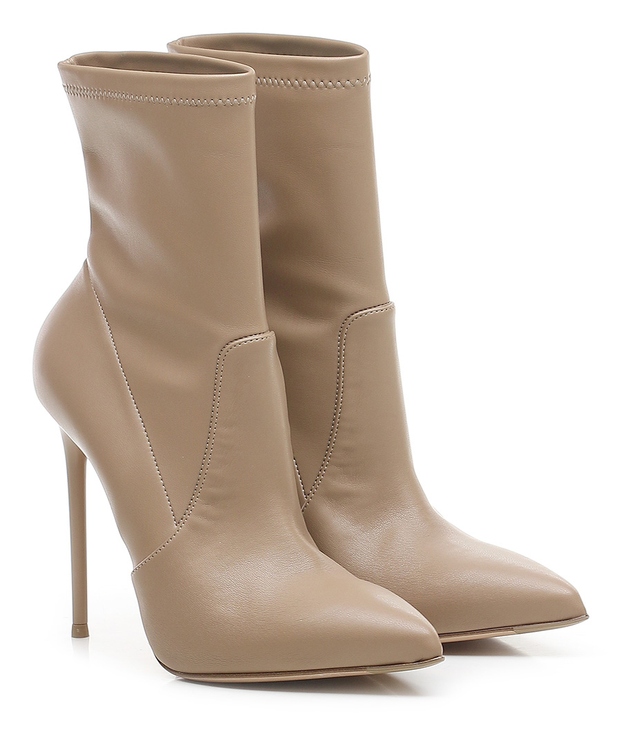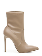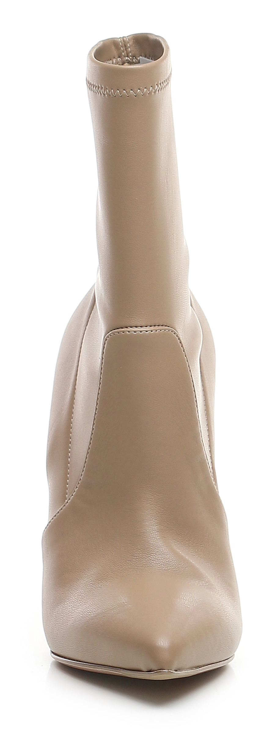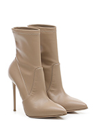 Stiefelette aus Kunstleder und Stretch-Kunstleder mit Leder- und Gummisohle. Absatzhöhe 110mm. Absatz aus PVC in mattem Effekt.