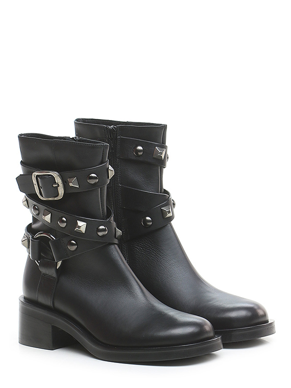 Lederstiefelette mit doppeltem Knöchelriemen und Sohle aus Leder und Gummi. 40 Absatz.