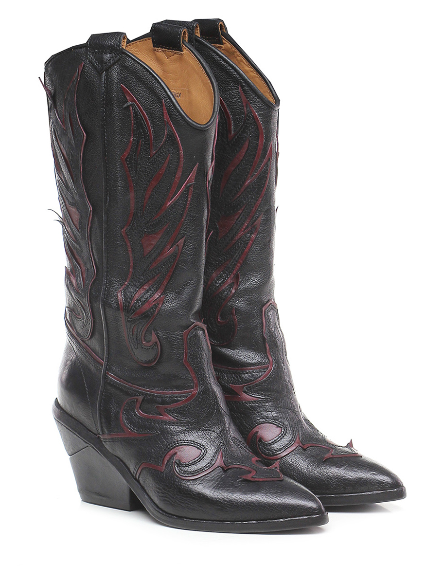 Stivale in pelle effetto vintage, suola in cuoio e gomma. Tacco scolpito 75, platform 15 con battuta 60.