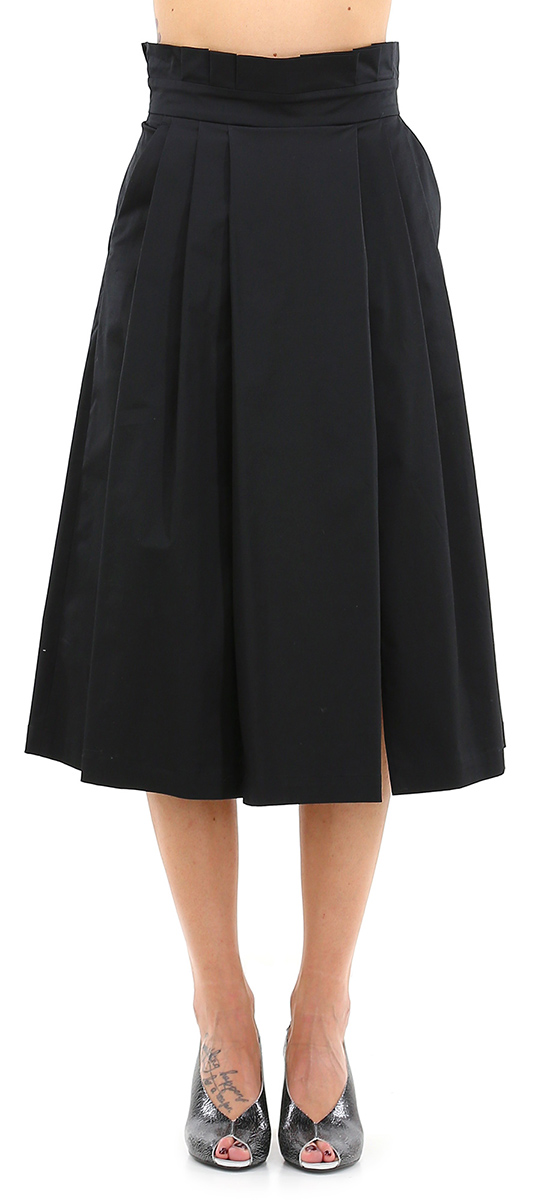 Gonna in cotone a vita alta con pieghe e tasche all'americana latrali. Zip su retro. La modella è alta 1,80 ed indossa la taglia 40.