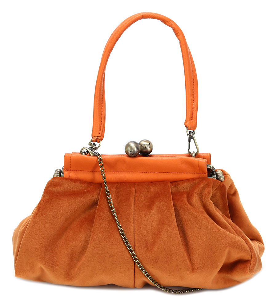 Samtbeutel mit Verriegelungsverschluss. Inklusive Metall-Schultergurt. Misst 30 x 20 cm.