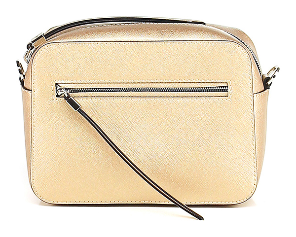 Borsa in pelle saffiano con chiusura a zip e tracolla inclusa. Misure 22x16 cm.