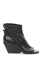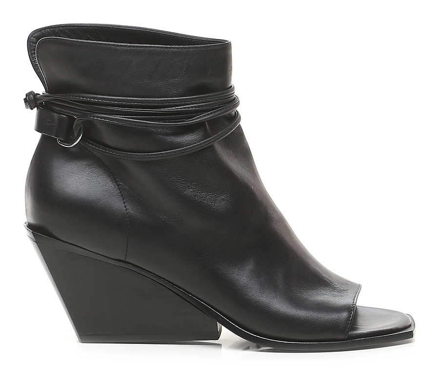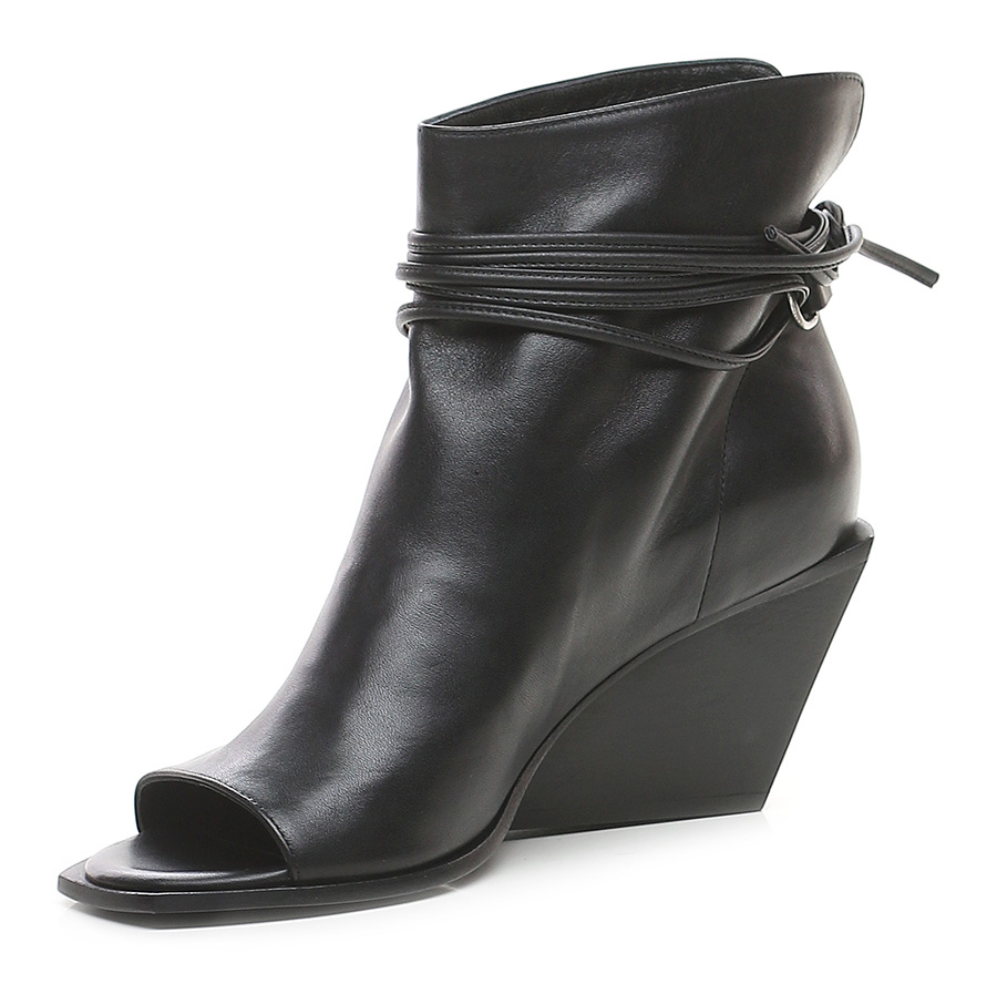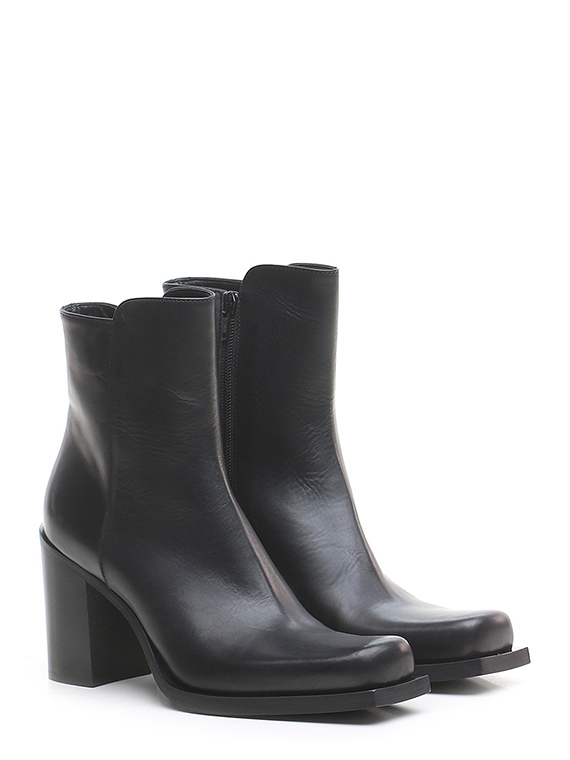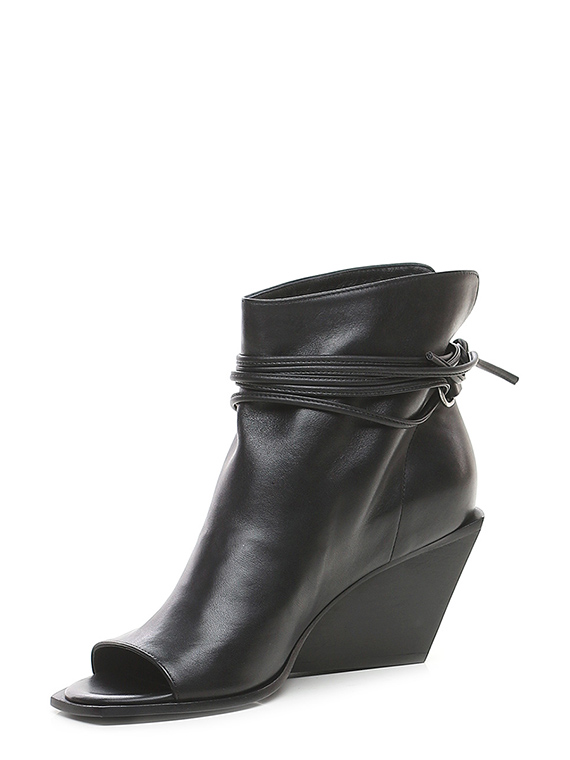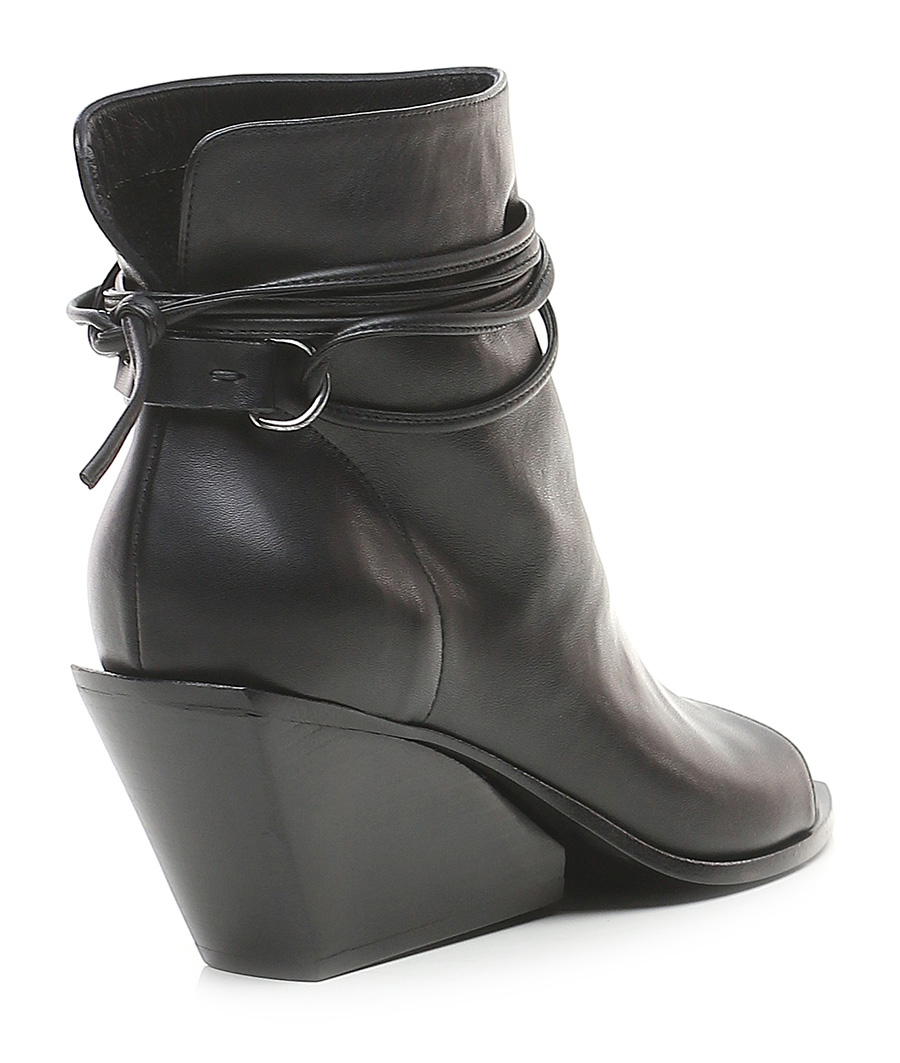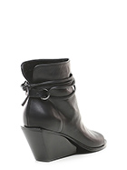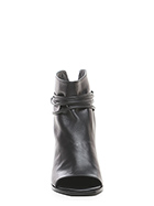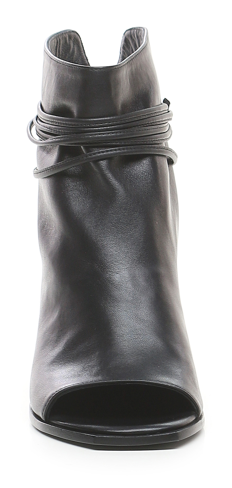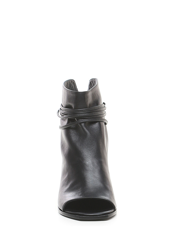 Lederstiefelette mit abnehmbarem Knöchelriemen und Sohle aus Leder und Gummi. Absatzhöhe 75mm. Absatz in Holzoptik.
