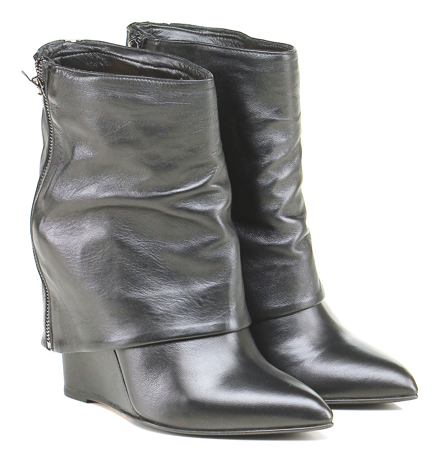 Zeppa in pelle vintage con doppia finta zip su retro e zip su lato interno. Gambale reverse con suola in cuoio e gomma. Tacco 115.