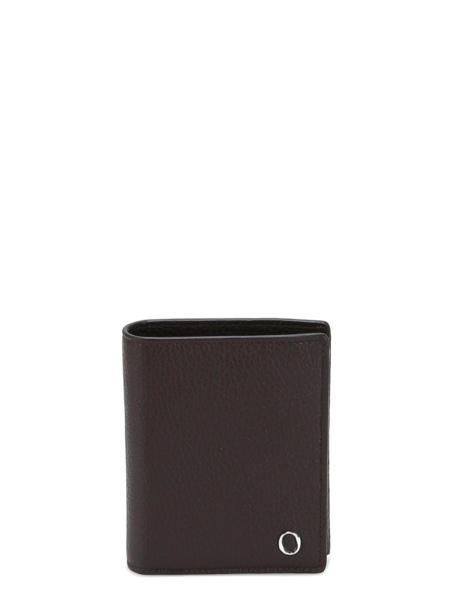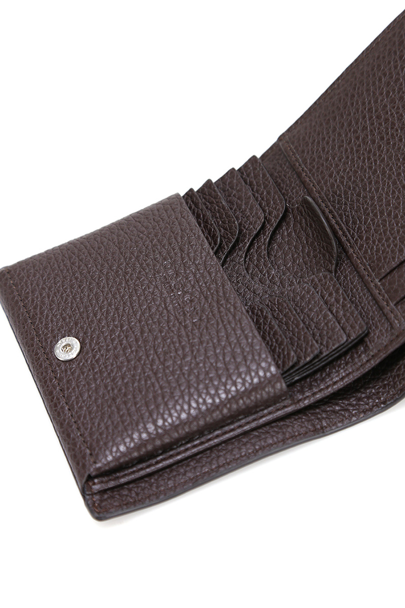 Geldbörse aus gehämmertem Leder mit Verschlussknopf. Innenfächer für Karten und Geldscheine. Misst 10 x 12 cm.