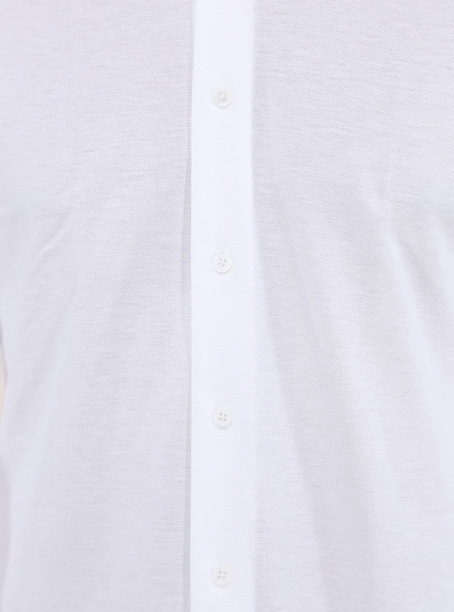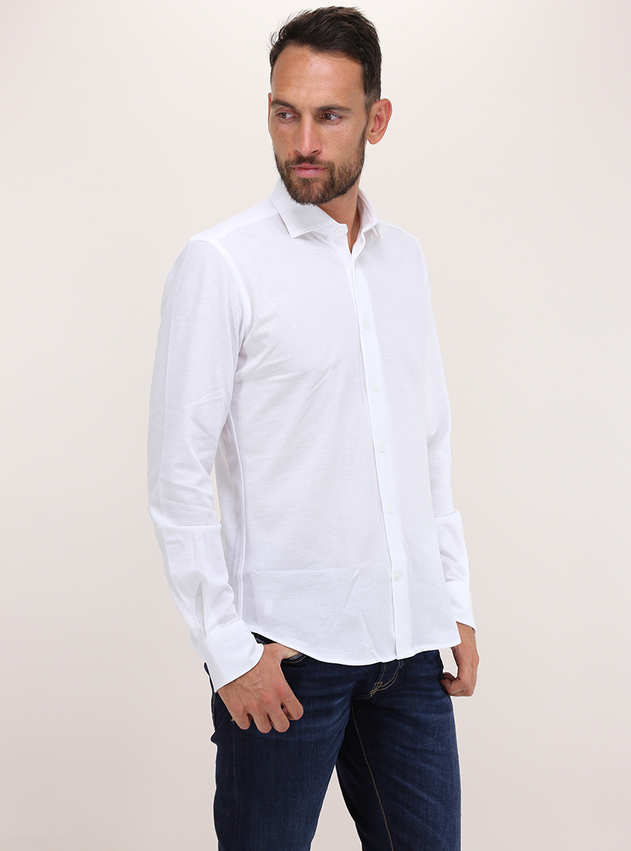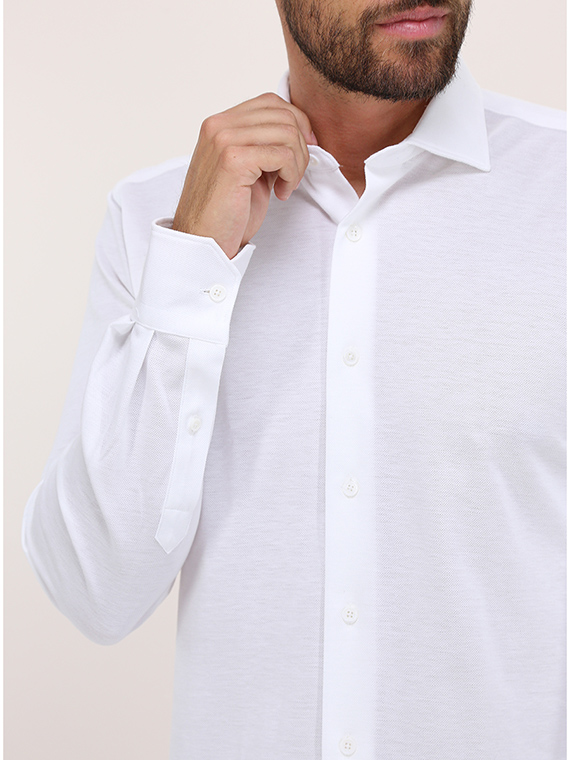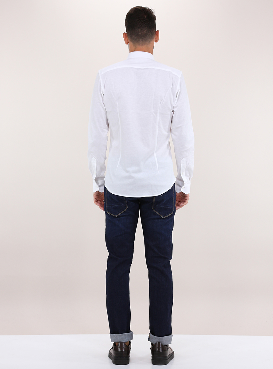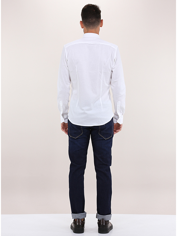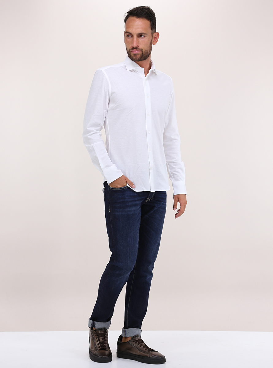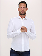 Himons Hemd aus reiner Oxford-Baumwolle. Lange Ärmel und französischer Kragen. Schmale Passform mit Doppelfalten auf der Rückseite. Das Model ist 1,80 groß und trägt Größe 40.