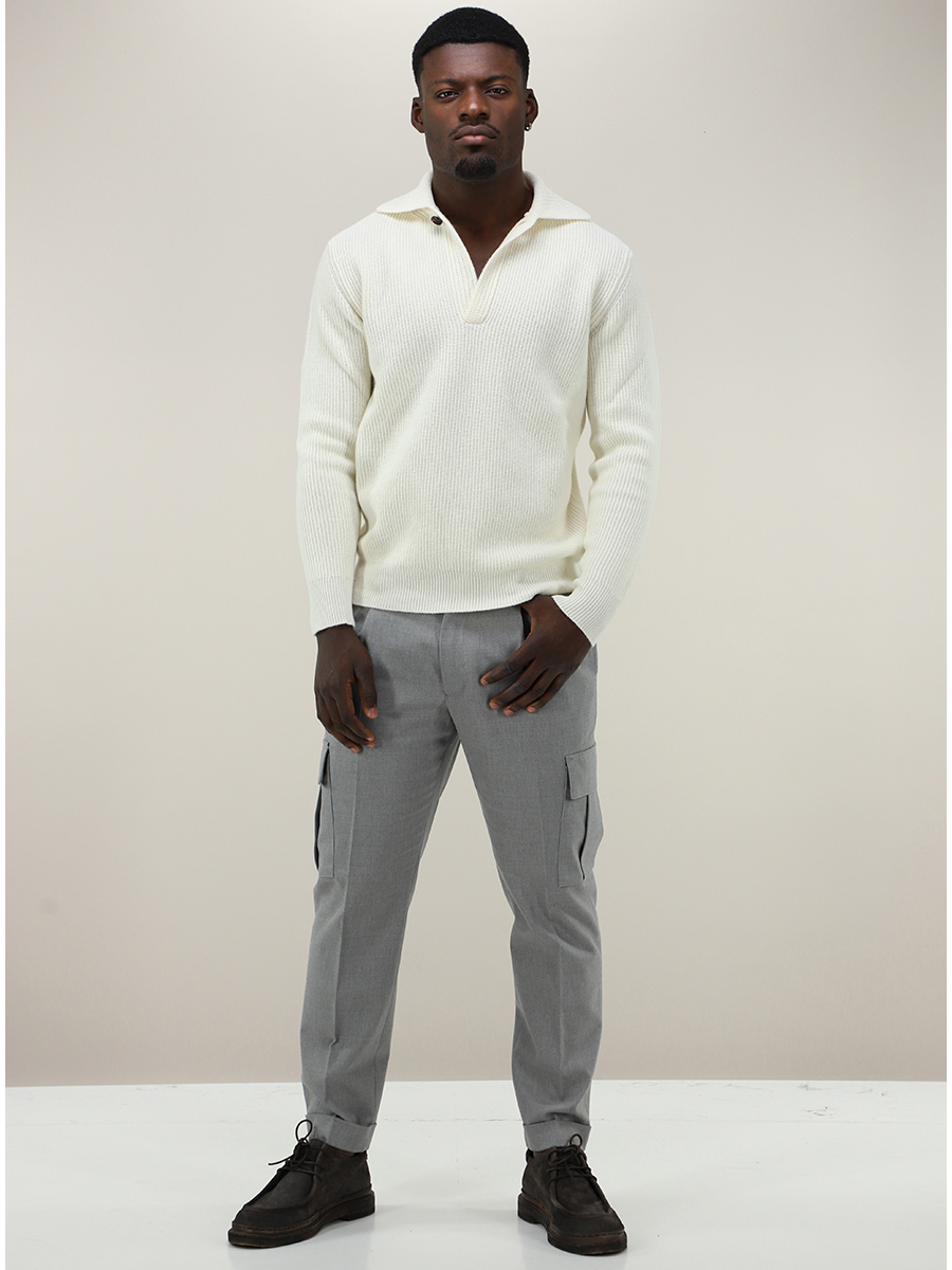 • Details: Umschlag unten, Falten an der Taille, Logo