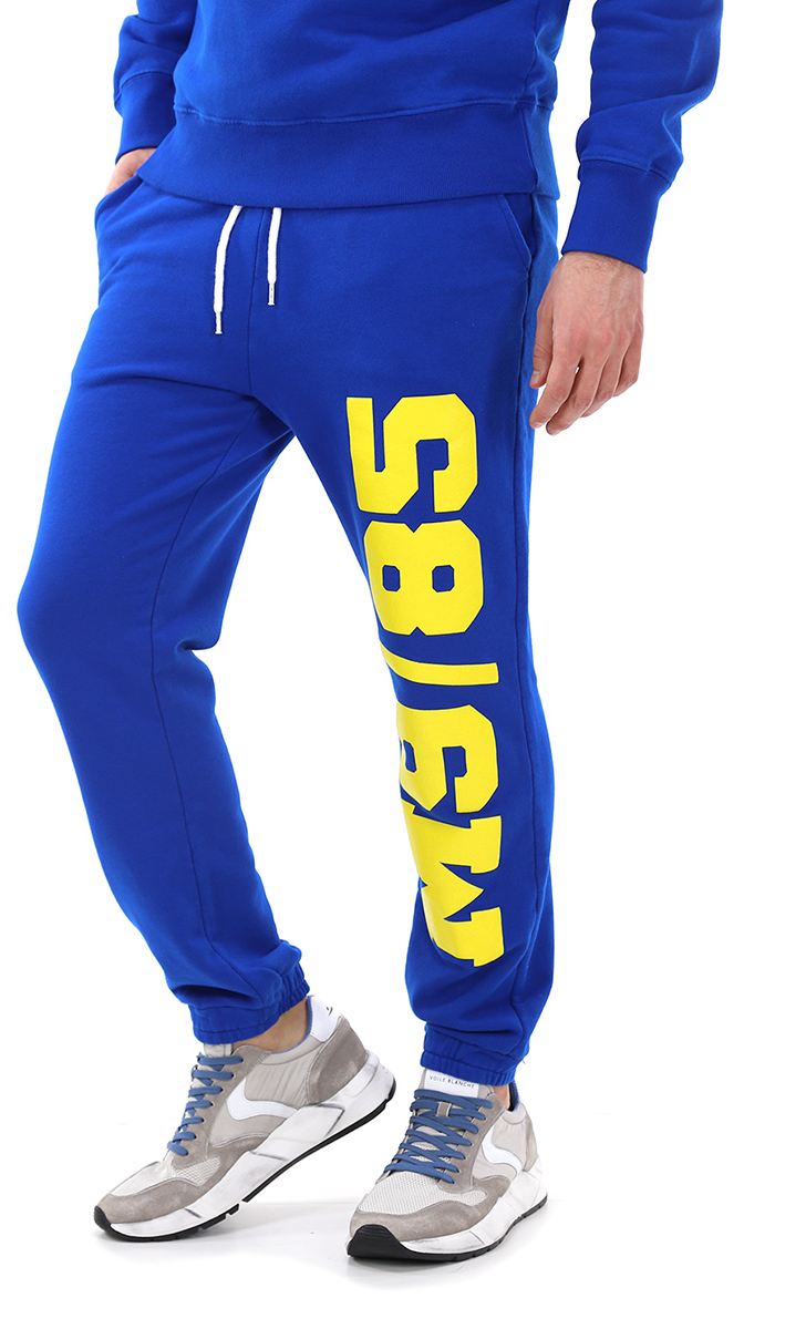 Weiche Baumwollhose mit elastischem Bund und Saum. Kontrastierender Logo-Print vorne. Das Model ist 1,80 groß und trägt Größe M.
