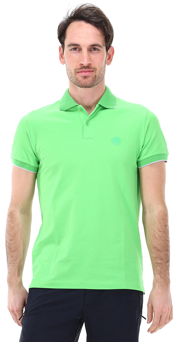 Kurzärmliges Poloshirt aus Stretch-Piqué. Kontrastprofil an den Kanten. Gesticktes Logo vorne. Das Model ist 1,80 cm groß und trägt Größe M.