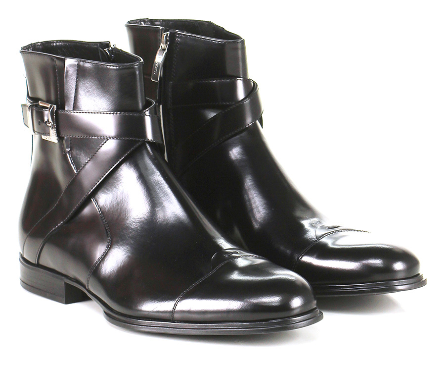 Polacco in pelle spazzolata con zip su lato interno e doppio cinturino frontale. Suola in gomma, tacco 25.