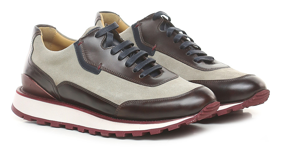 Sneaker aus Leder und Wildleder mit Gummisohle. Absatzhöhe 30 mm, Plateau 20 mm mit 10 mm Absatz.