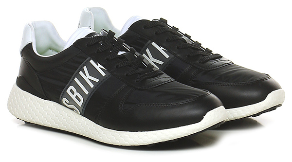 Sneaker in pelle e tessuto tecnico con suola in gomma. Tacco 30, platform 20 con battuta 10.