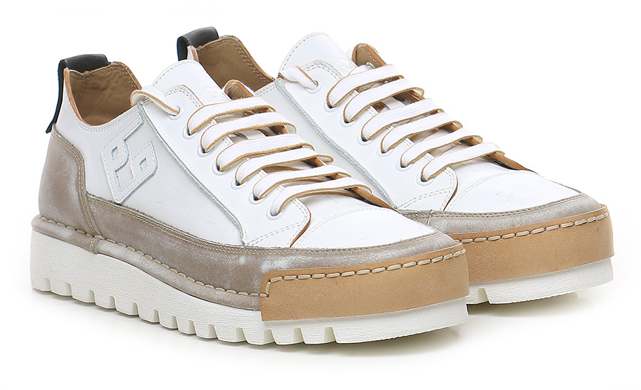 Sneaker in pelle effetto vintage con suola in gomma. Altezza tacco 35mm, platform 25mm con battuta 10mm.