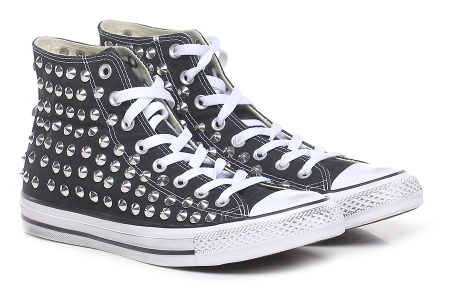 Sneaker aus Stoff mit Nietenapplikationen auf dem Obermaterial, Gummisohle in Vintage-Optik. Sohlenhöhe: 45, Plattform 45.