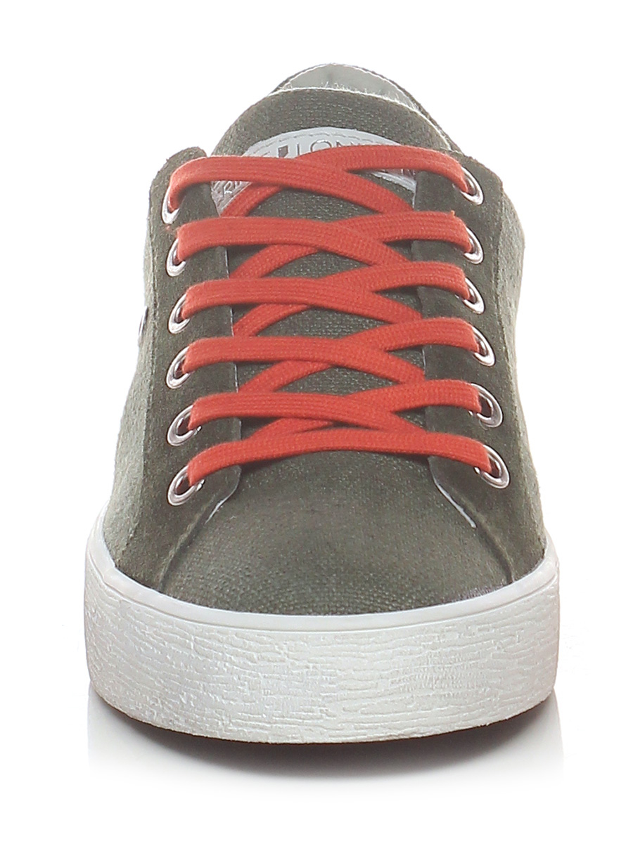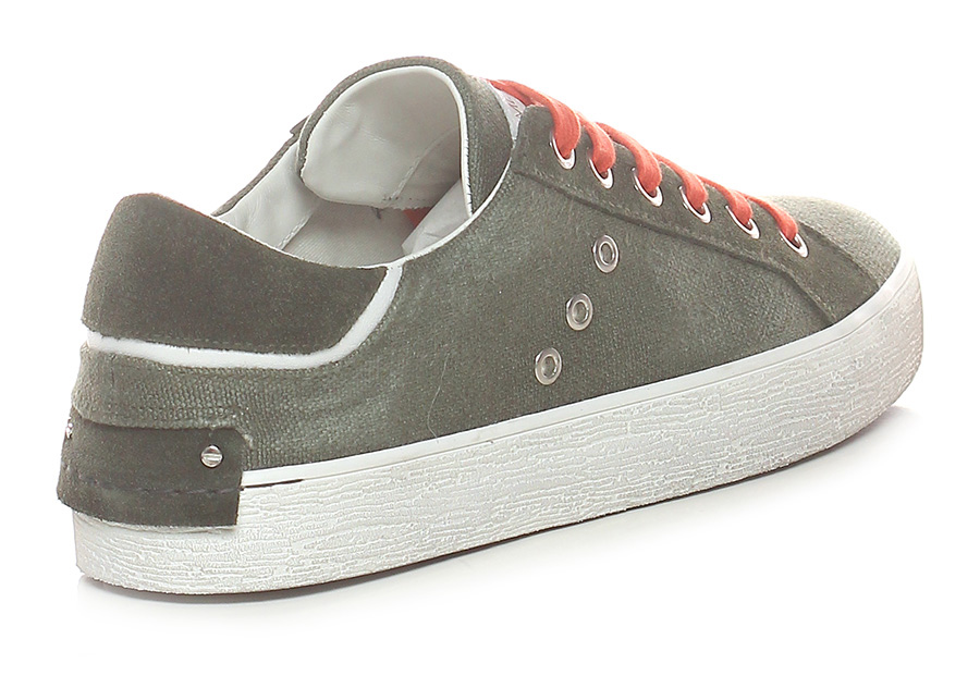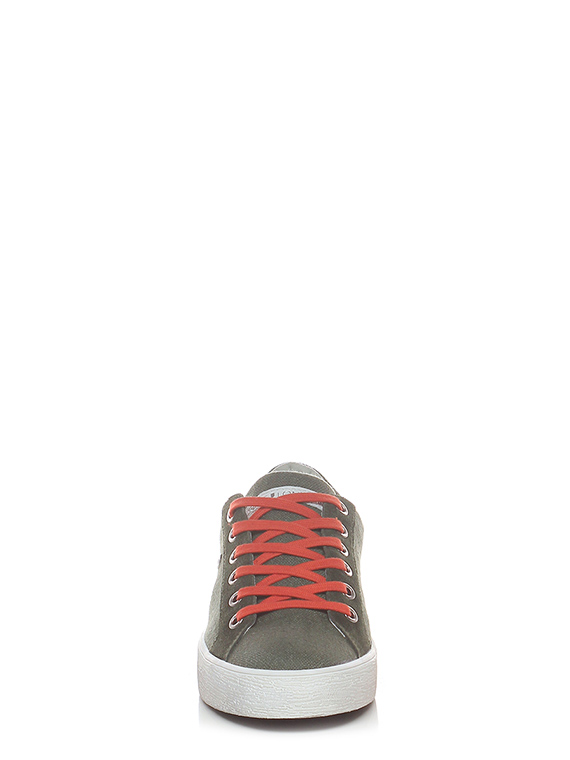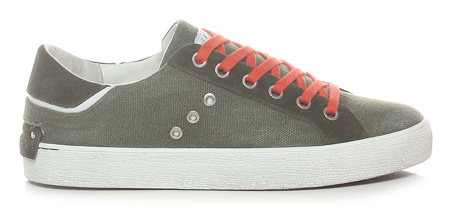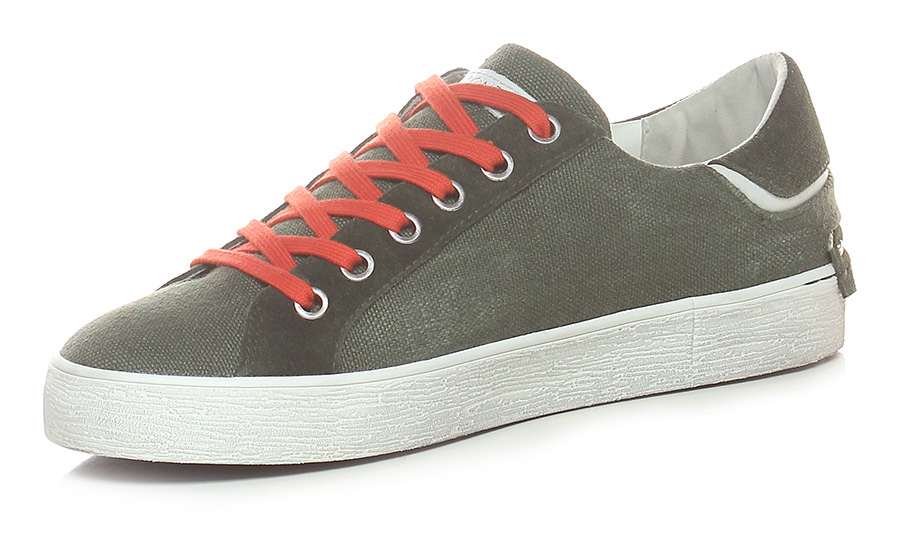 Sneaker aus Wildleder und Vintage-Stoff mit Vintage-Gummisohle. Absatz 30.