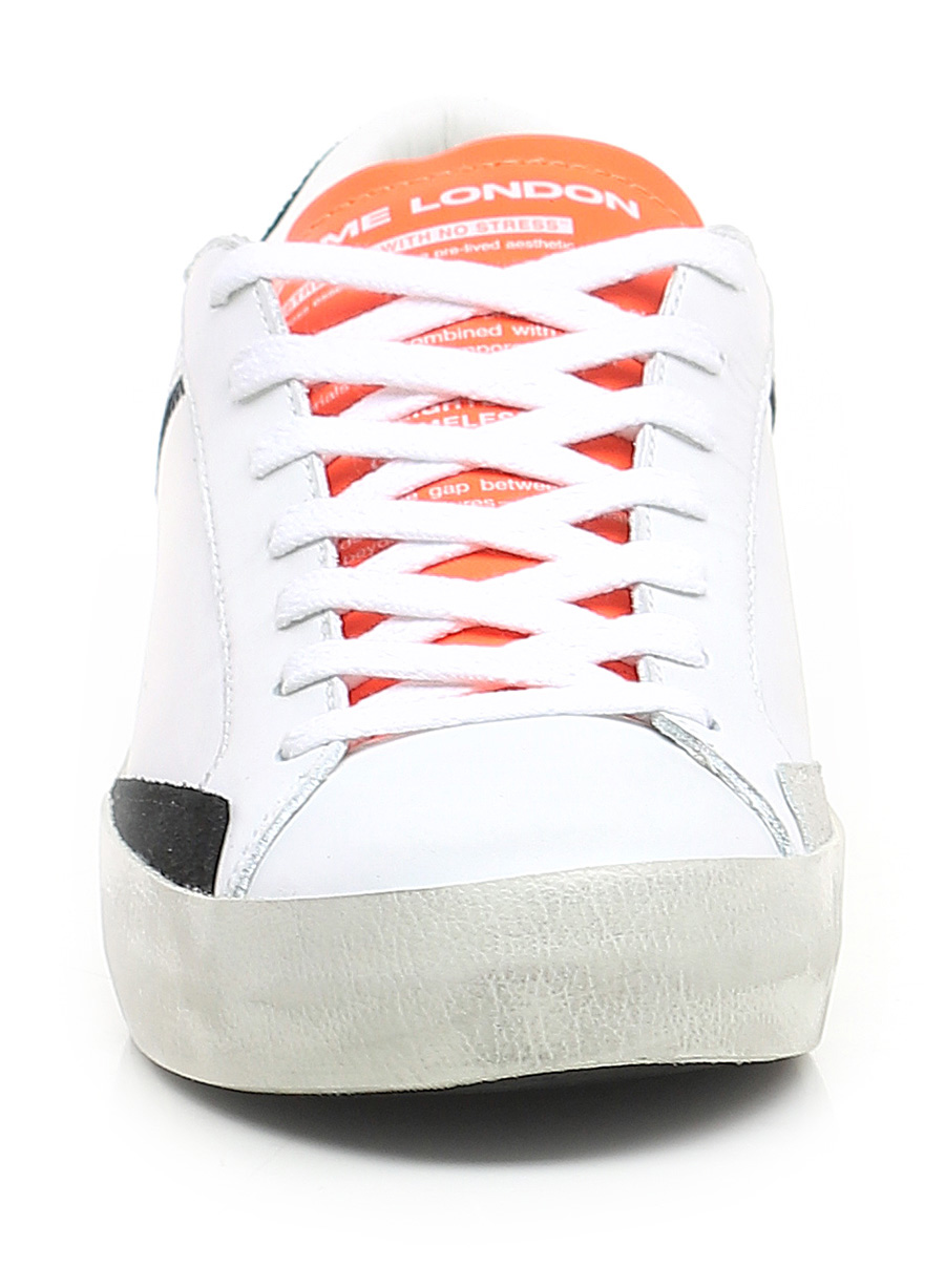 Sneaker aus Leder mit Vintage-Effekt und Wildledereinsätzen. Gummisohle mit Vintage-Effekt. Absatzhöhe 30 mm, Plateau 25 mm mit 5 mm Absatz.