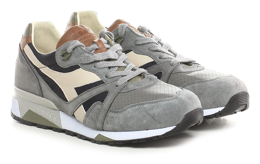 Sneaker in camoscio, pelle e tessuto con suola in gomma. Tacco 45, platform 25 con battuta 20.