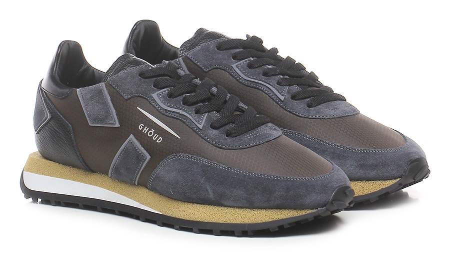 Sneaker aus Stoff, Wildleder- und Ledereinsätzen, Gummisohle. Sohlenhöhe: 35, Plattform 20 mit Absatz 10.