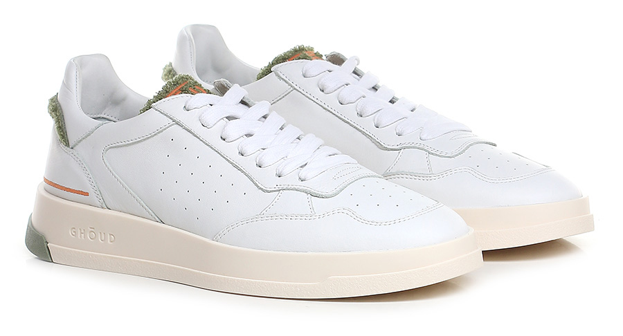 Ledersneaker mit Schwammzunge und Teil der Ferse. Gummisohle. 35 mm Absatzhöhe, 25 mm Plateau mit 10 mm Absatz.