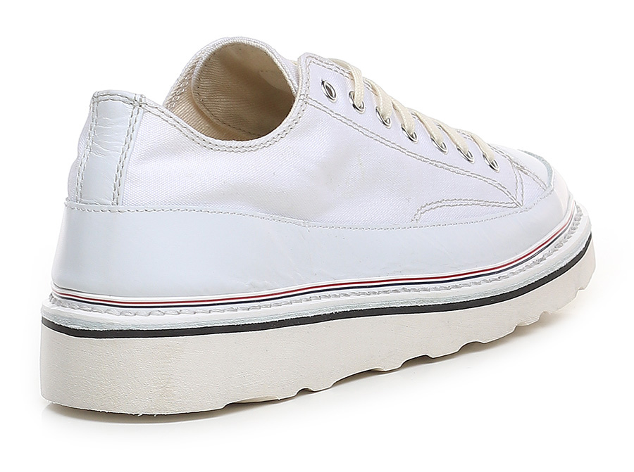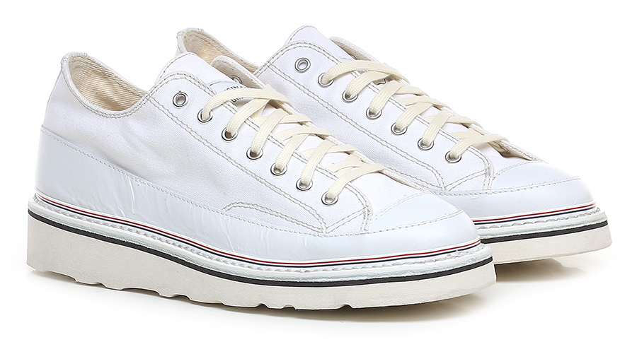Sneaker aus Stoff und Leder mit Vintage-Effekt und Vibram-Gummisohle. 35 mm Absatzhöhe, 20 mm Plateau mit 15 mm Absatz.