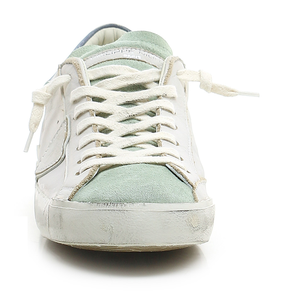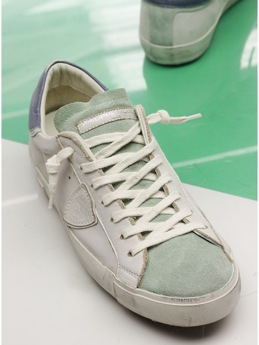 Sneaker aus Leder und Wildleder mit Vintage-Effekt. Gummisohle mit Vintage-Effekt. 35 mm Sohlenhöhe, 25 mm Plateau mit 10 mm Absatz.