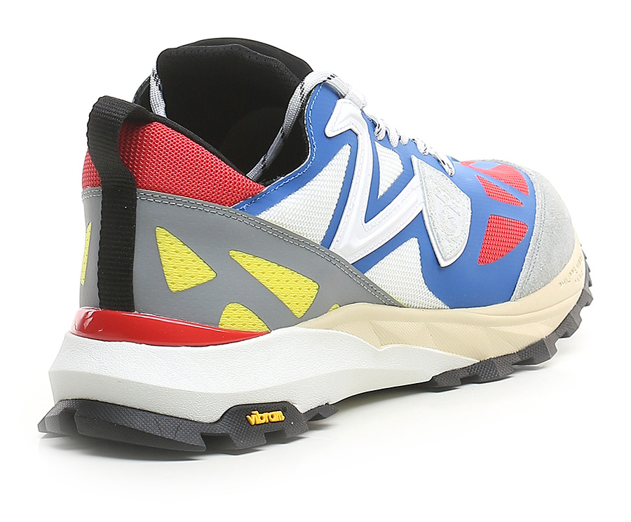 Sneaker aus Stoff und Gummi mit Wildledereinsätzen und Vibram-Gummisohle. 45 mm Absatzhöhe, 35 mm Plateau mit 10 mm Absatz.