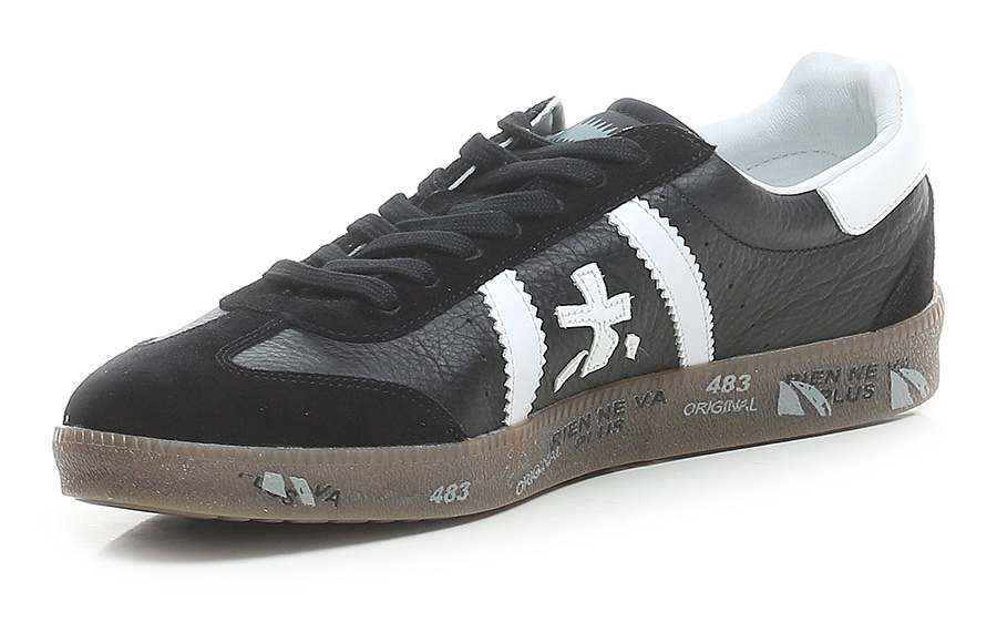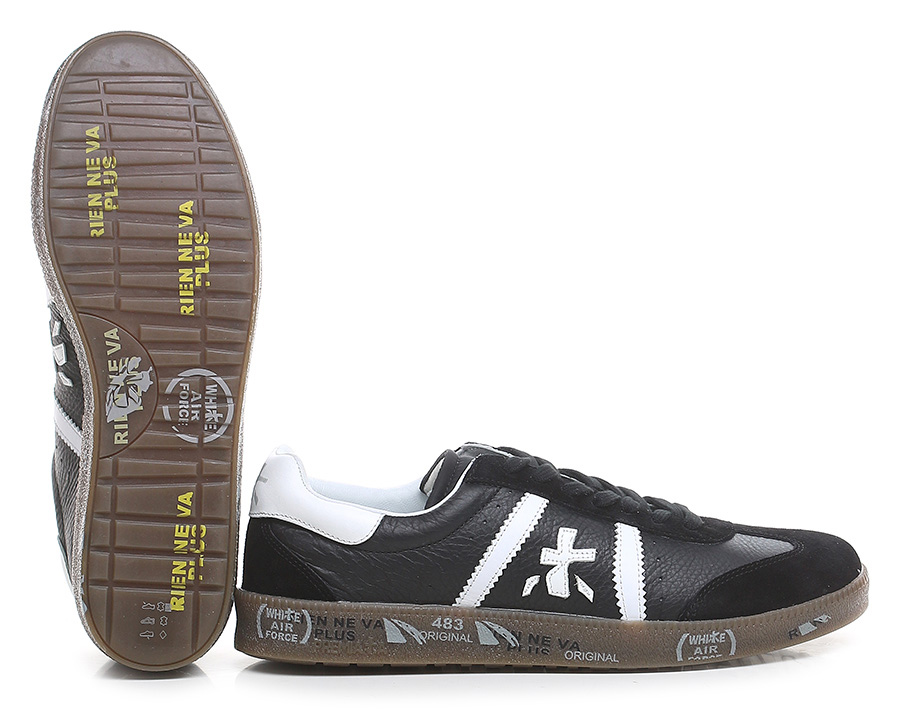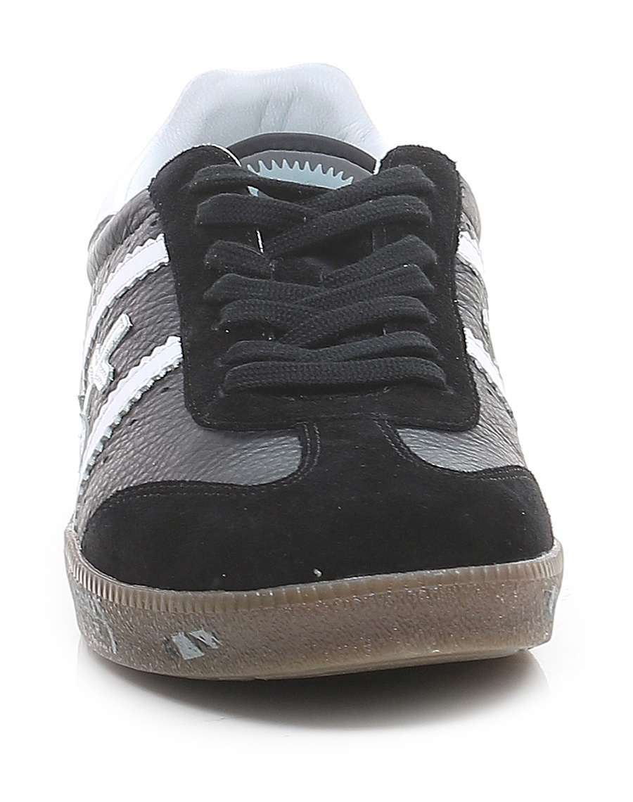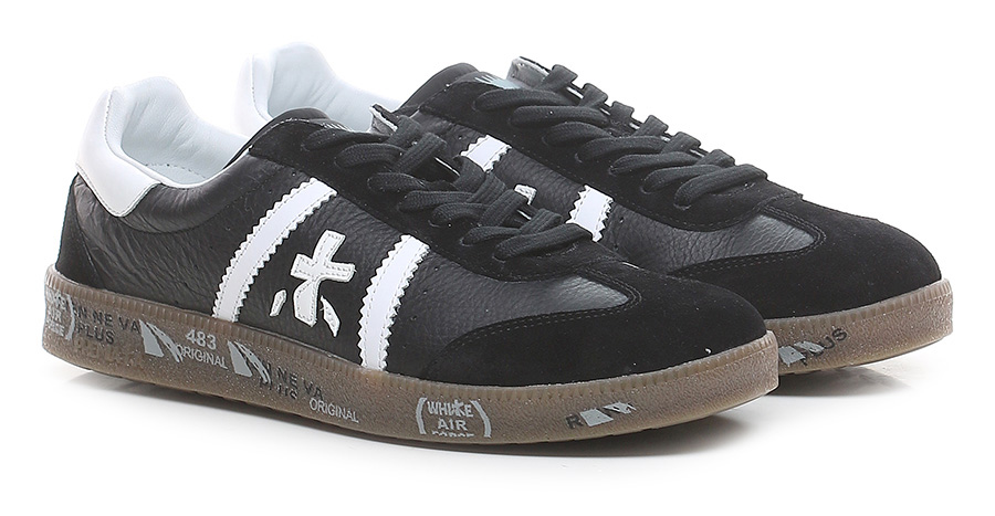Sneaker aus Leder und Wildleder mit Gummisohle. 25 mm Absatzhöhe, 20 mm Plateau mit 5 mm Absatz.