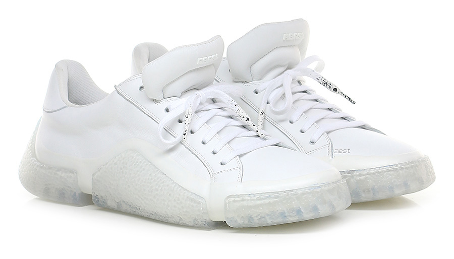 Ledersneaker mit Gummisohle. Absatzhöhe 30 mm, Plateau 25 mm mit 5 mm Absatz.