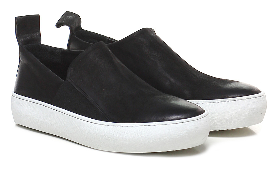 Sneaker in pelle ingrassata vintage con inserto elasticizzato su lato esterno e suola in gomma. Tacco 35.