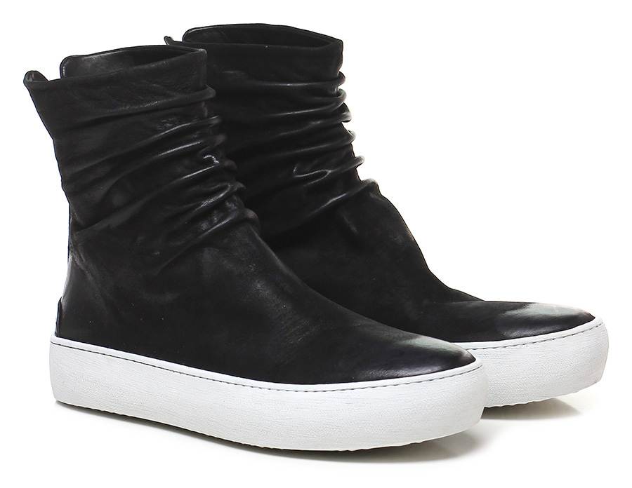 Sneaker in pelle ingrassata vintage con zip su retro e suola in gomma. Tacco 35.