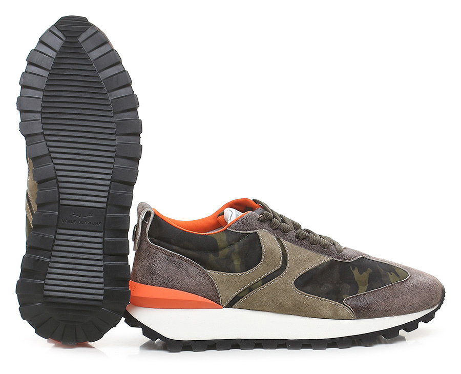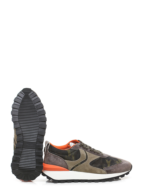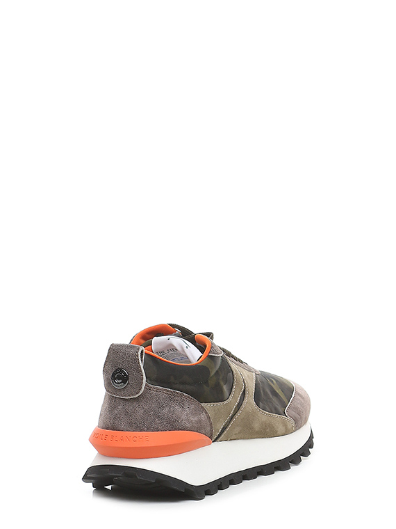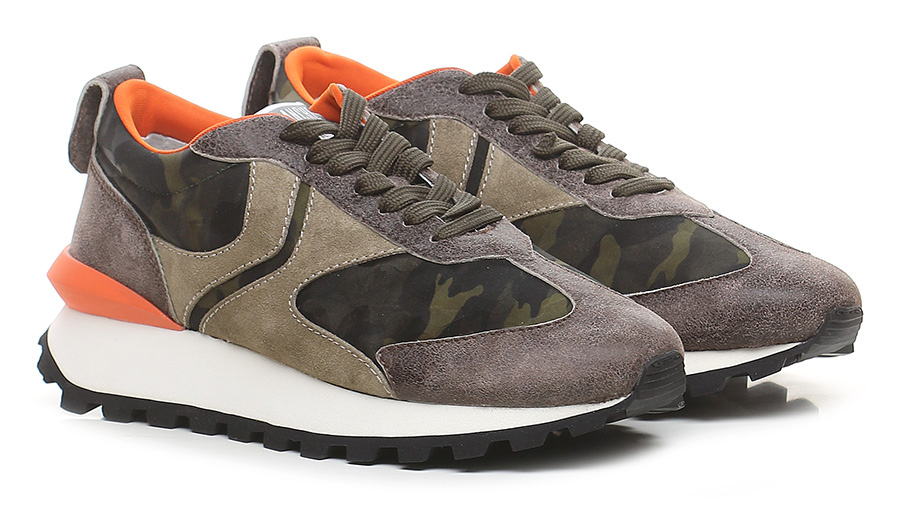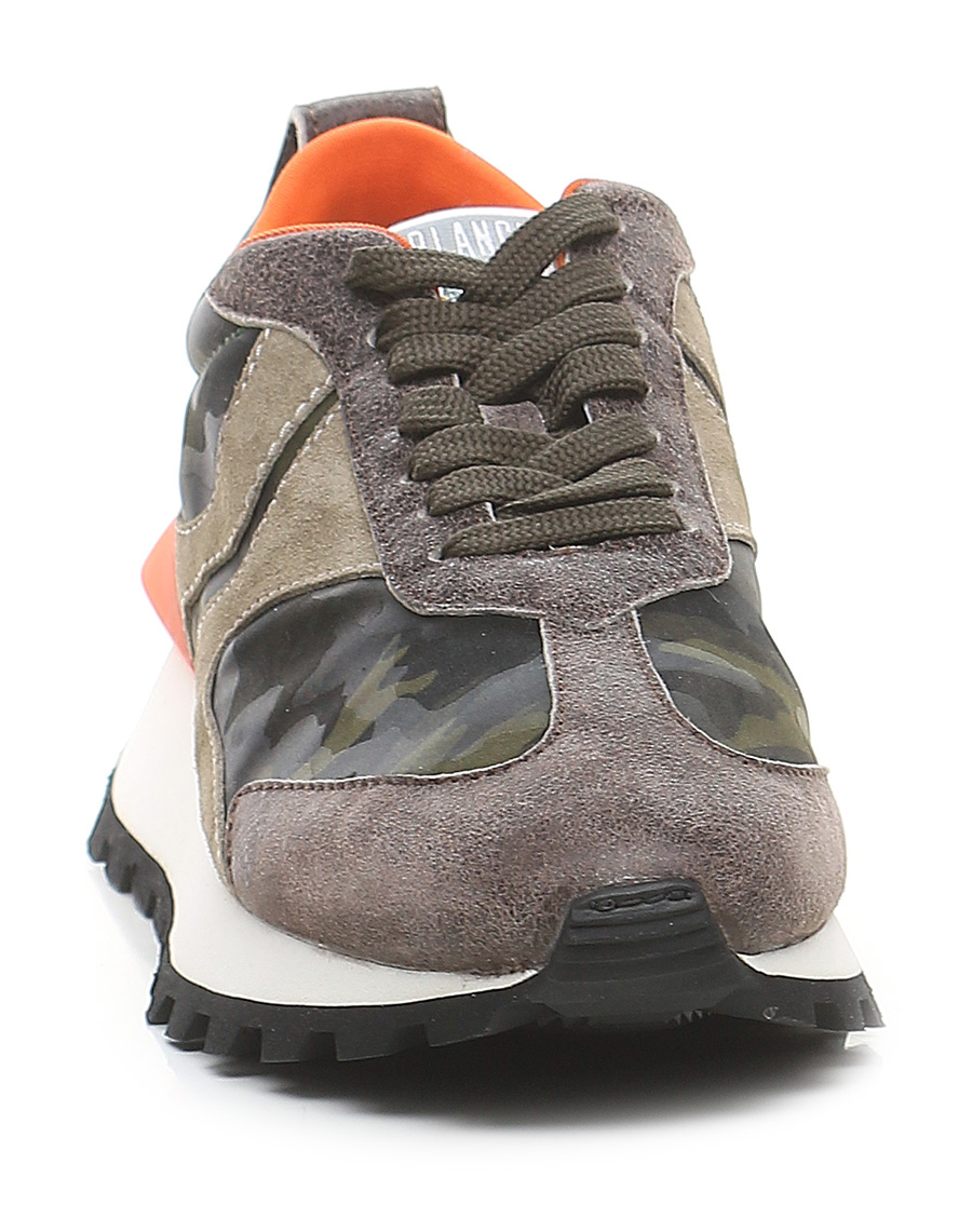 Sneaker aus Stoff, Leder mit Vintage-Effekt und Wildleder. Gummisohle. 40 mm Absatzhöhe, 25 mm Plateau mit 15 m Leiste.