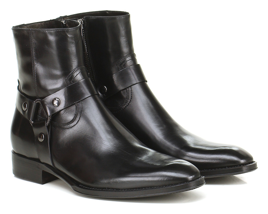 Polacco in pelle vintage con zip su lato interno e cinturino alla caviglia. Suola in cuoio, tacco 30.