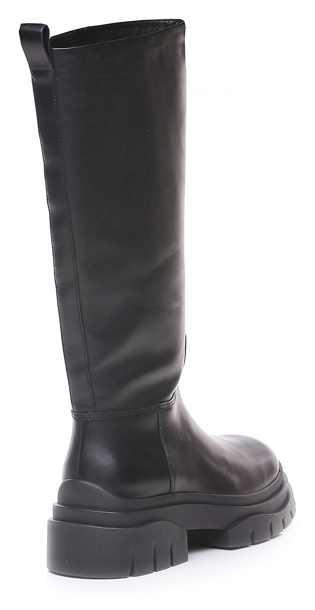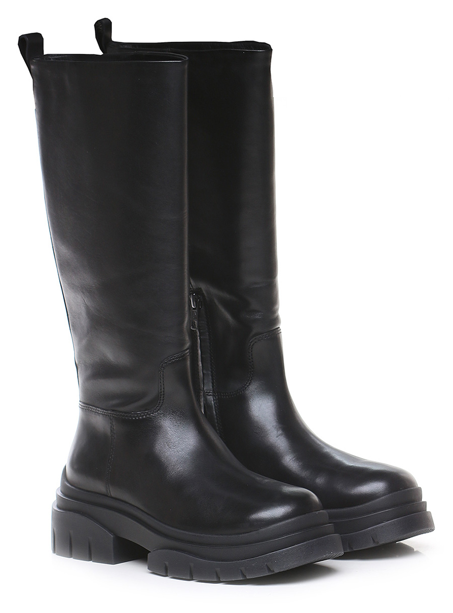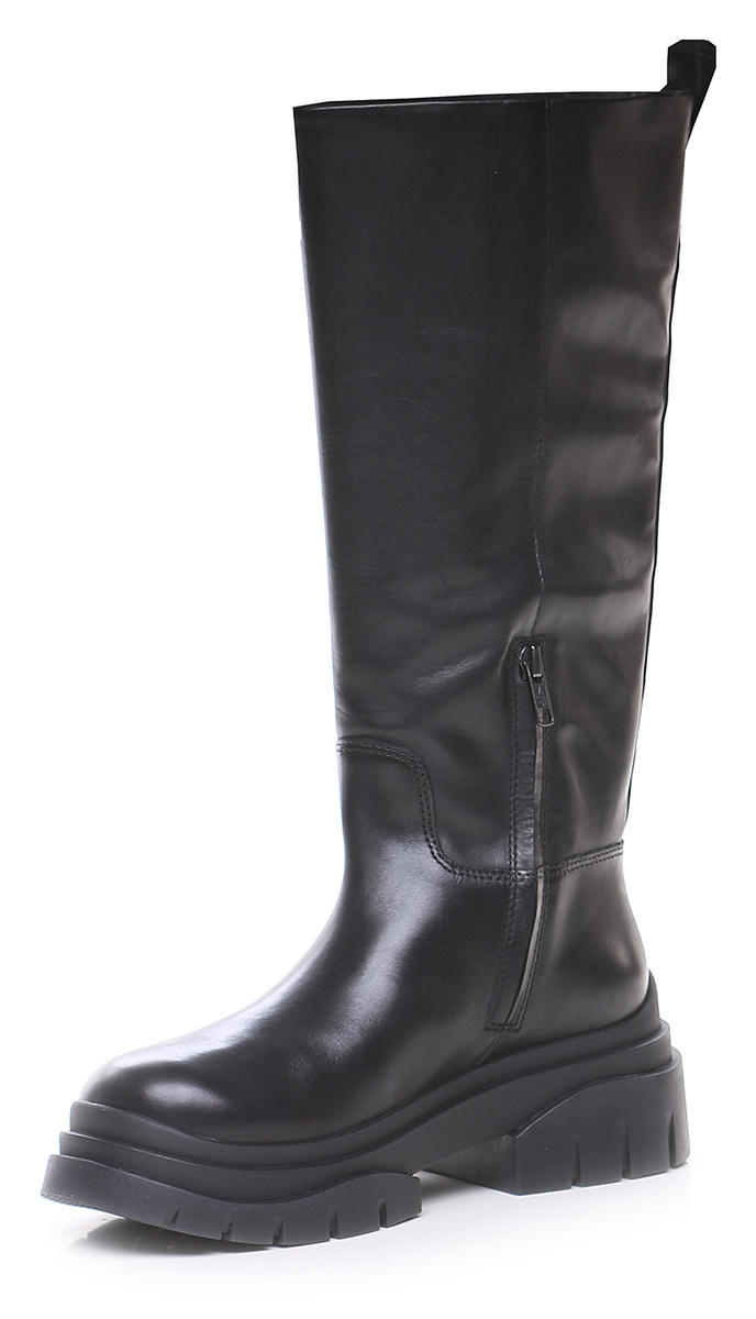 Lederstiefel mit seitlichem Reißverschluss. Gummisohle. 55 mm Absatzhöhe, 35 mm Plateau mit 20 mm Absatz. Beinhöhe 35cm.