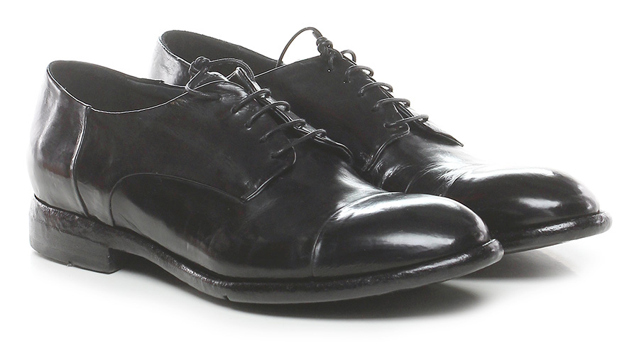Stringata in pelle effetto delavè vintage con suola in cuoio. Tacco 25.