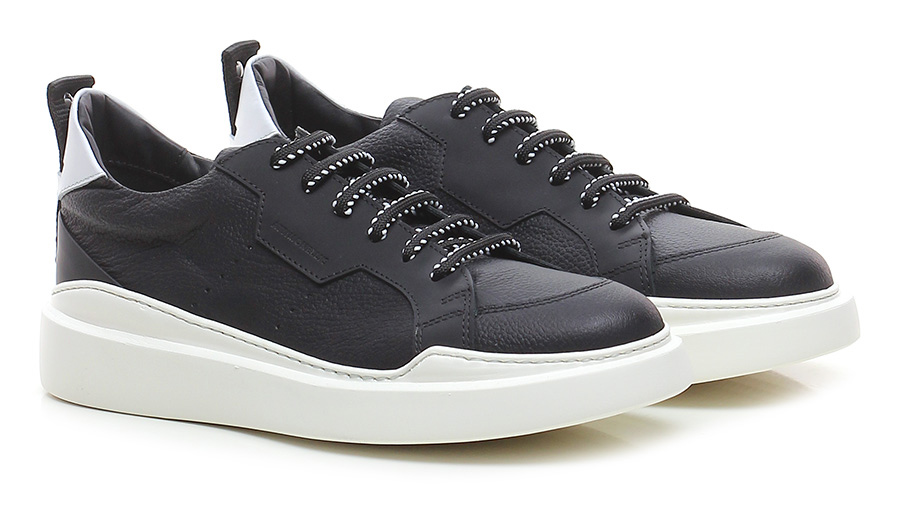Ispec-Sneaker aus Leder der Marke Attimonelli mit weißem Lederabsatz. Gummisohle. Sohlenhöhe: 35, Plattform 25 mit Absatz 10.