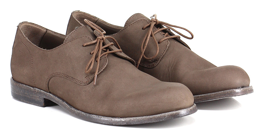 Schnürschuhe aus gebürstetem Vintage-Nubukleder mit Ledersohle. Absatz 25.
