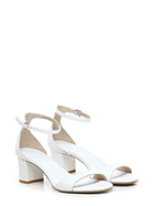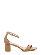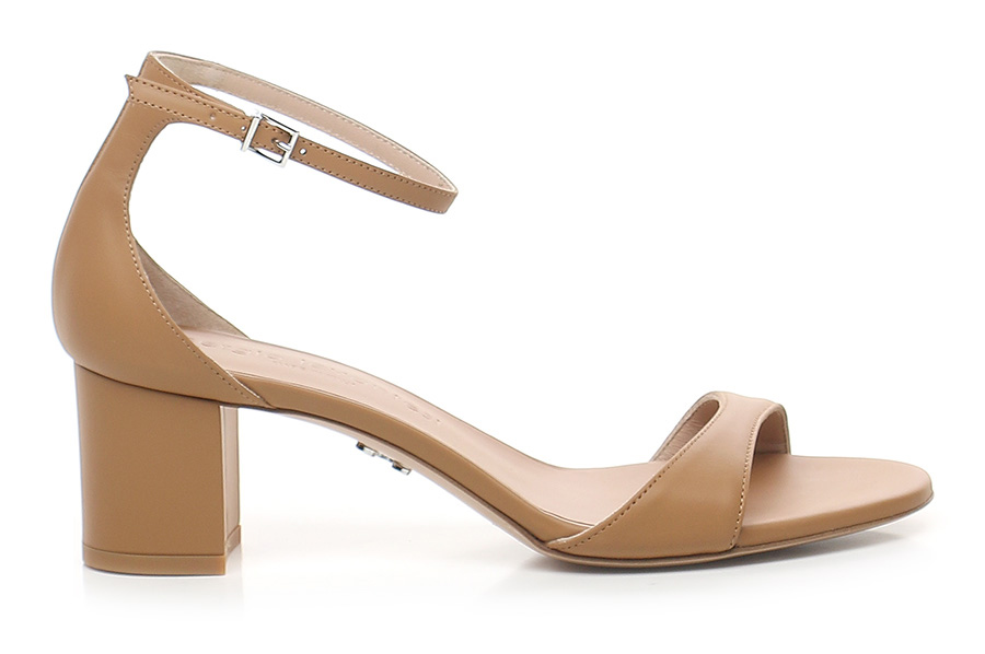 Ledersandale mit Knöchelriemen und Sohle aus Leder und Gummi. Absatzhöhe 55mm. Ledergefütterter Absatz.