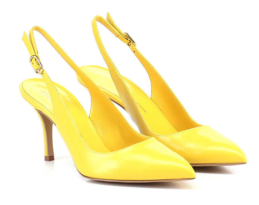 Scarpa con tacco in pelle con cinturino su retro e suola in cuoio. Tacco 85.
