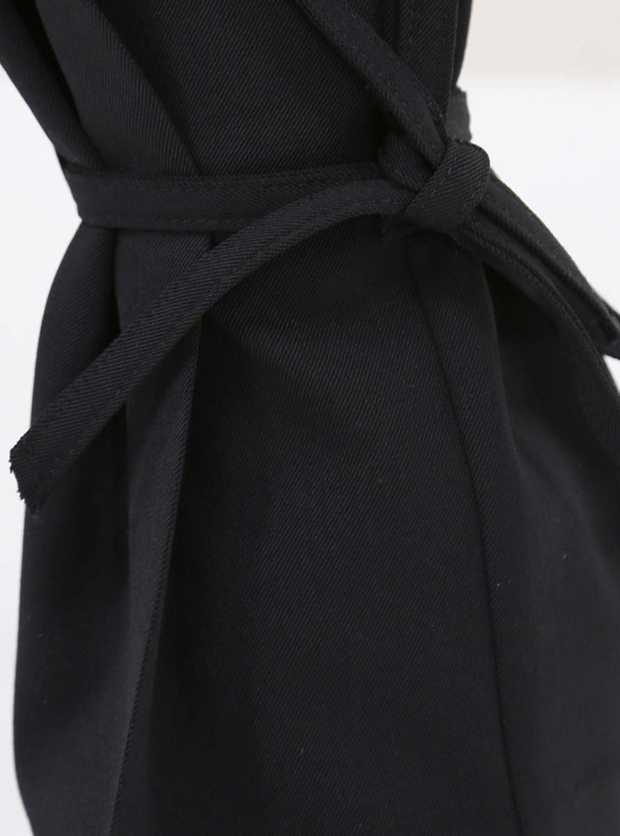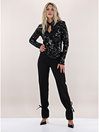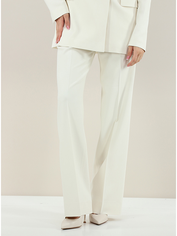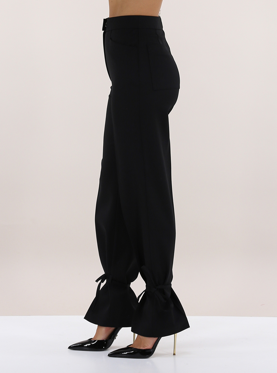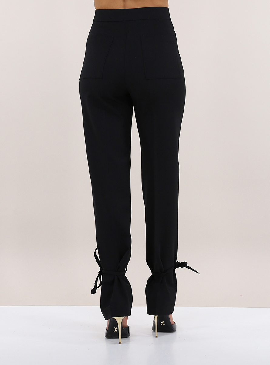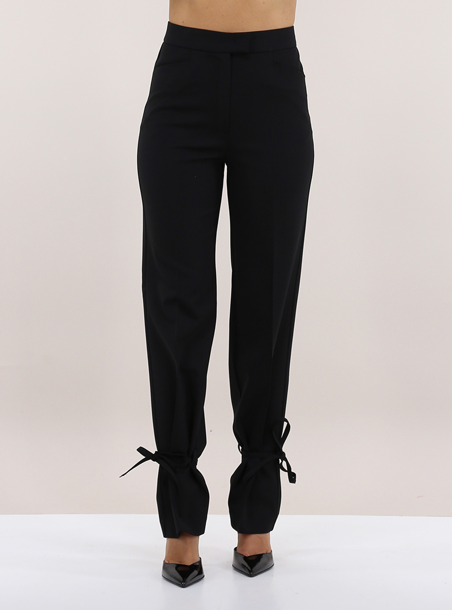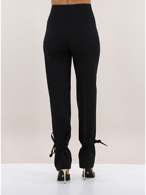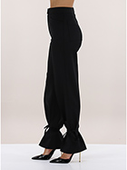 Beatrice B trousers in stretch wool blend. High waist with front pouch pockets and patch pockets on the back. Laces on the bottom. The model is 1.68 tall and wears size 38.