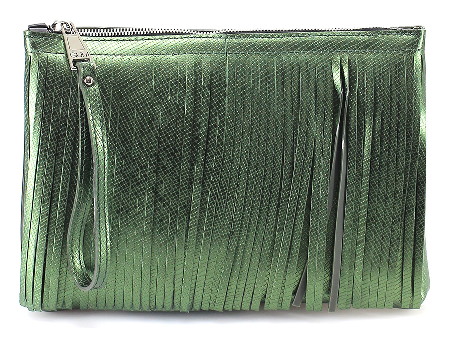 Beauty in lattice laminato effetto tejus con chiusura a zip e frange su ambo i lati. Misure 25 x 18 cm.