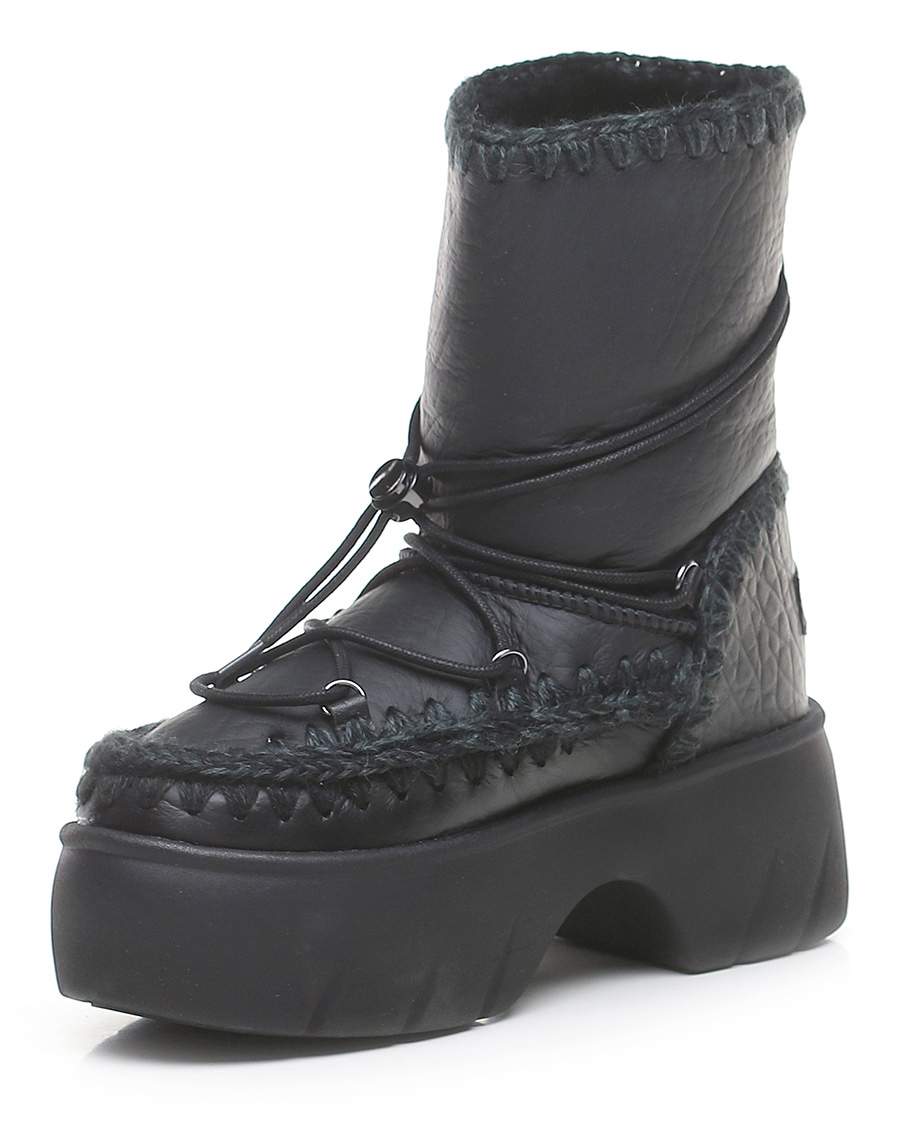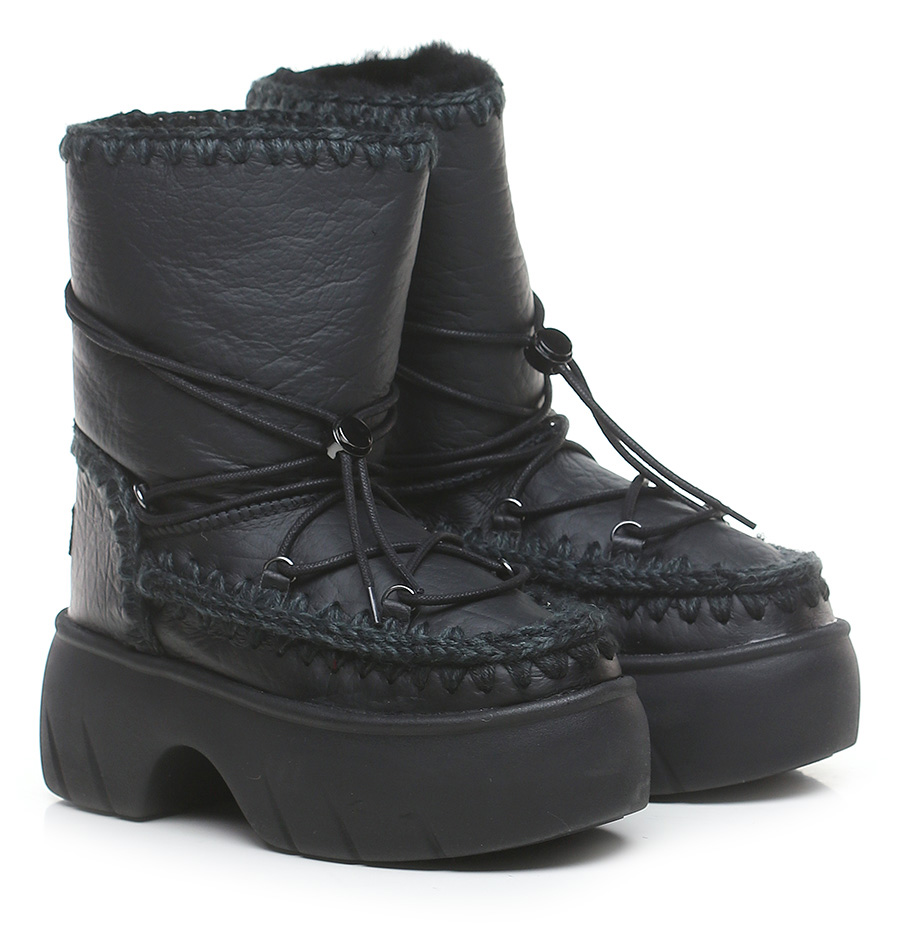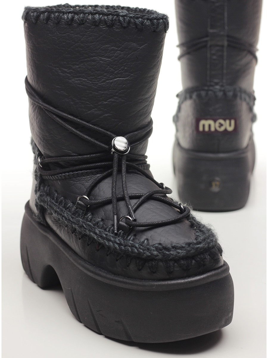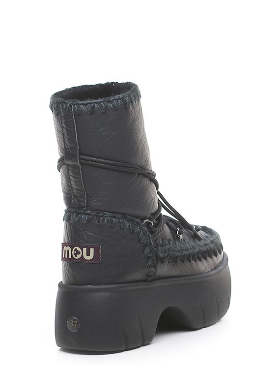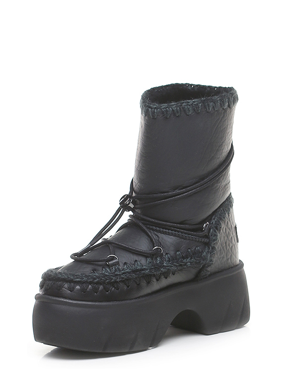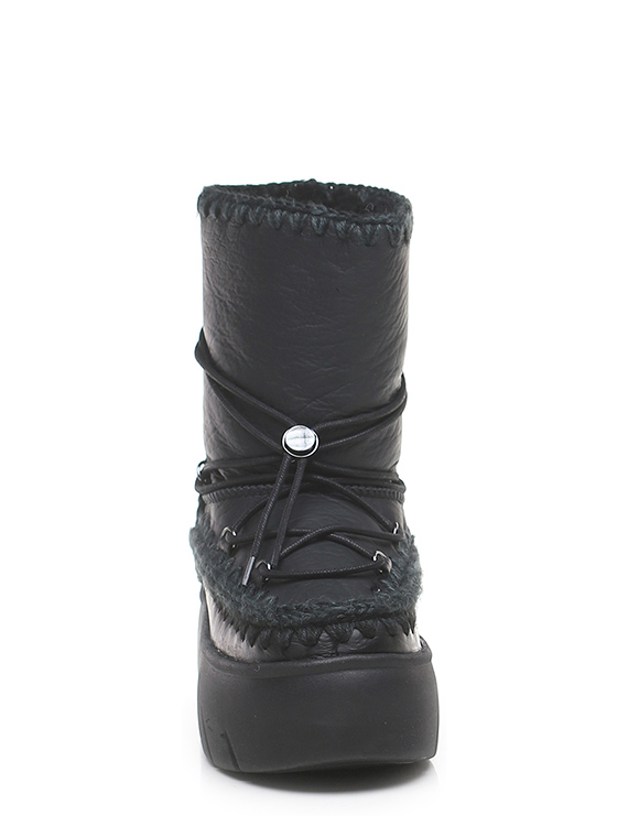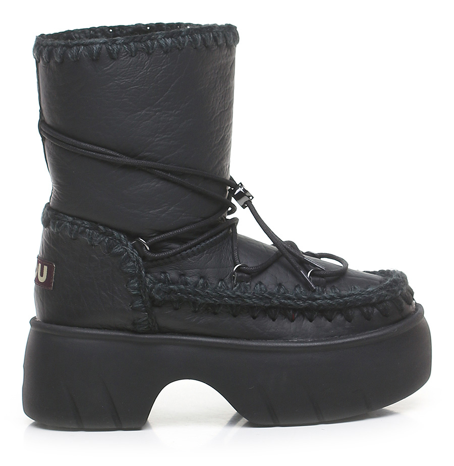 Leather ankle boot with rubber sole. Heel height 65mm, platform 55mm with 10mm ledge.