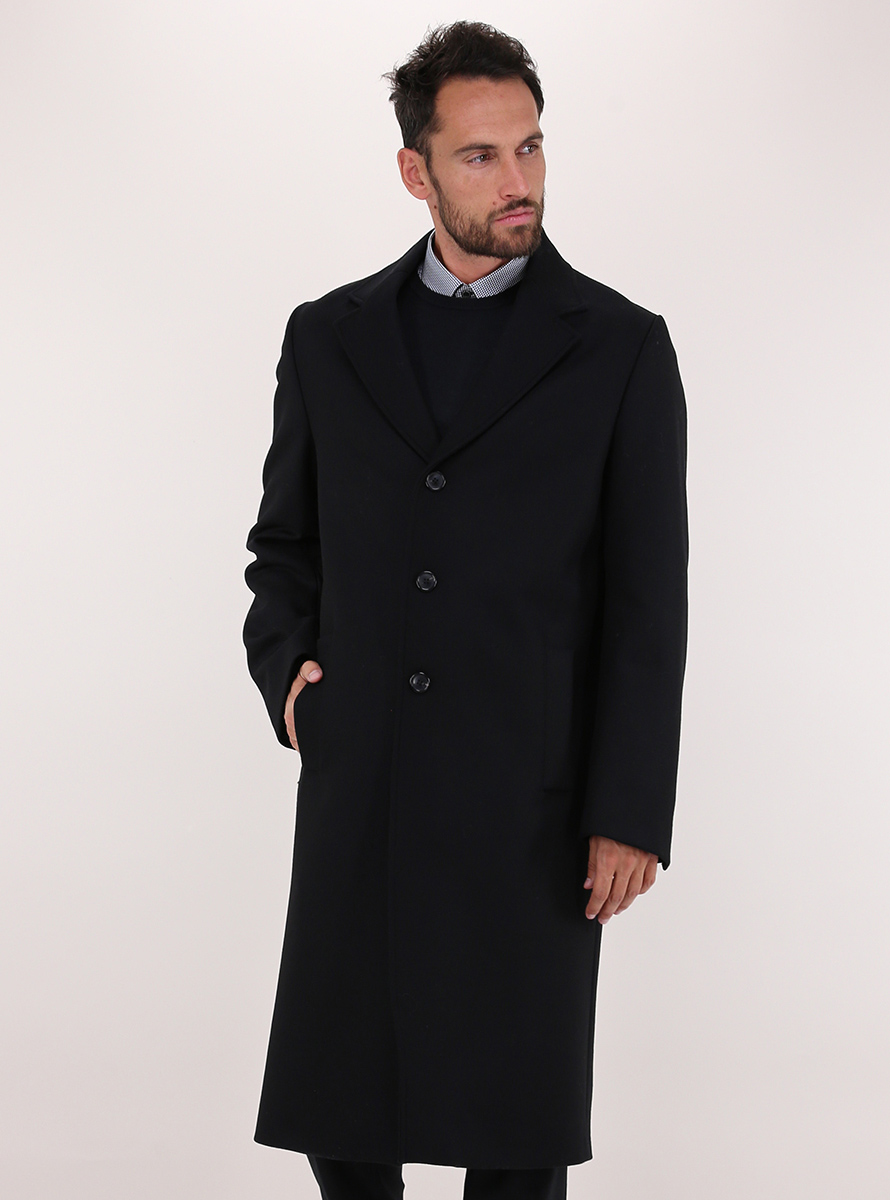Grifoni coat in lined wool blend with long sleeves and lapel collar. Welt patch pockets and front closure buttons. Back vent. The model is 1.80 tall and wears size 48.